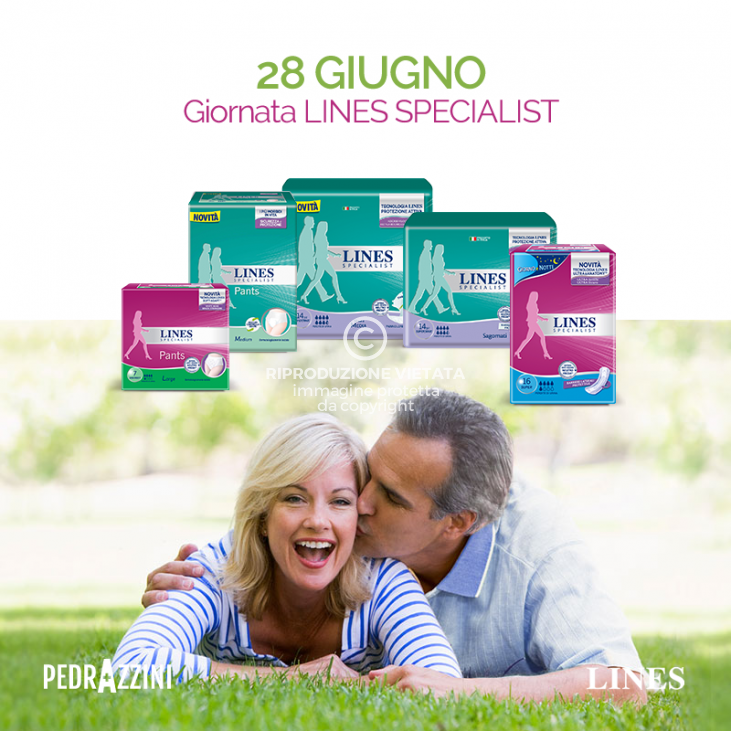 Lines, che da oltre 50 anni si prende cura delle persone con un'ampia gamma di prodotti assorbenti, ha creato la nuova linea completa Lines Specialist, mettendo la propria ricerca al servizio di tutte le persone che soffrono di perdite di urina, da lievi a molto elevate e offrendo un'alta protezione e cura della pelle insieme ad una discrezione e ad un comfort elevati.